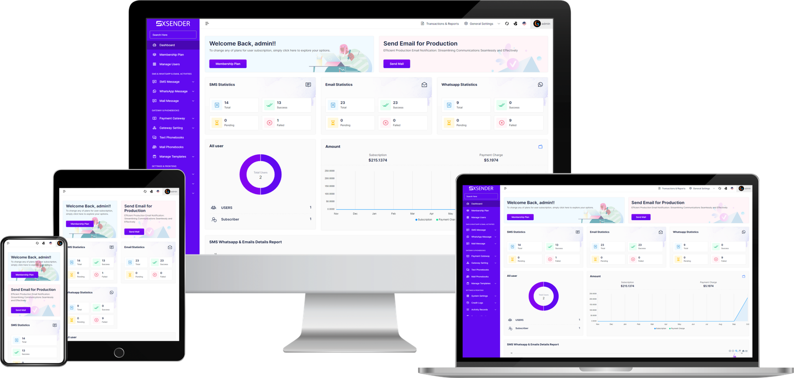 A Bulk SMS, Email, and WhatsApp SaaS website is a platform that allows you to send large volumes of SMS, emails, and WhatsApp messages to multiple recipients simultaneously.