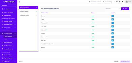 • Use Admin's Gateway for: SMS Android Email